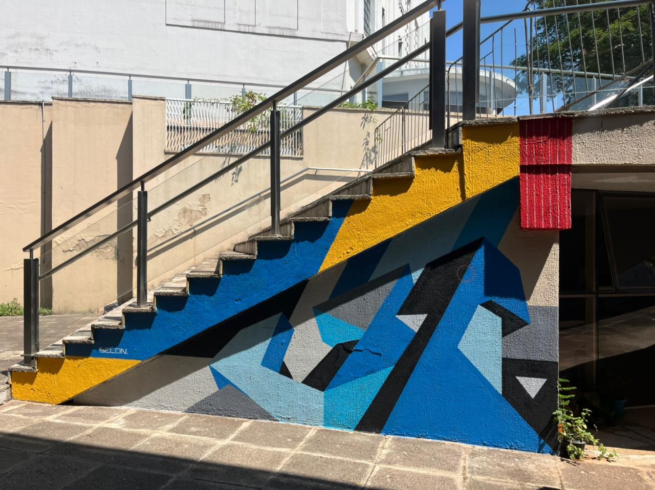 A ideia partiu do artista Santhiago Selon, que assinou uma exposição no local em maio deste ano. Ele executou um mural recheado de formas geométricas, sua marca registrada. “Foi uma chance de dar continuidade ao trabalho da minha exposição, saindo do espaço propriamente expositivo e ocupando um espaço da arquitetura do centro cultural, que é um local que eu me identifiquei muito e que me instigou bastante”, destacou.