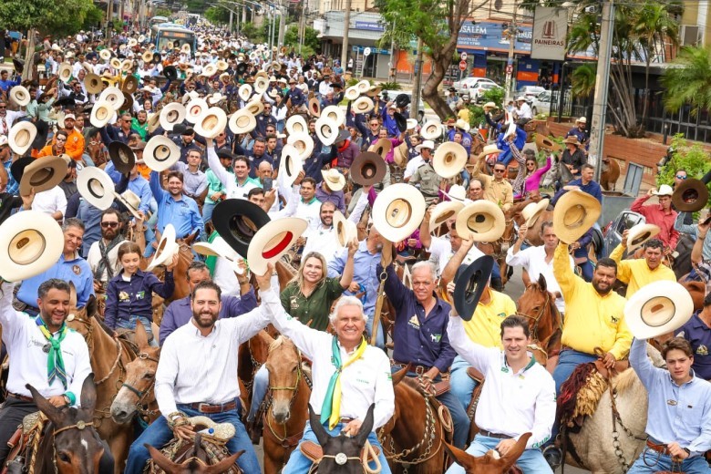 O governador de Goiás, Ronaldo Caiado, e o vice-governador Daniel Vilela participaram da cavalgada que integra a programação do 3º Encontro de Comitivas de Goiás, realizado em Goiânia. A tropeada reuniu mais de 3 mil muladeiros e percorreu ruas e avenidas da região central da capital.