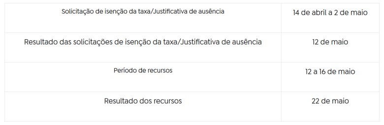 A retificação também valerá para as justificativas de ausência no Enem 2024. Os períodos previstos para recursos e divulgação dos resultados referentes à isenção e às justificativas estão mantidos.