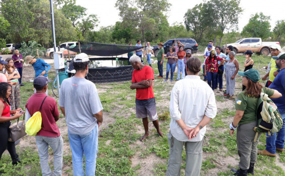 A supervisora da APA do Jalapão, responsável pela realização do curso, incluiu na programação visita a uma horta de esgoto, onde os comunitários cortam e queimam a vegetação, drenam a água do terreno e plantam suas culturas de base, como a mandioca. “Essa prática é ancestral dos povos originários quilombolas e sertanejos da região do Jalapåo, que garante a soberania alimentar desses povos e comunidades tradicionais e só existe aqui no Jalapão”, explicou Rejane. Os participantes conheceram ainda um tanque de peixes, o "sisteminha", que utiliza os resíduos do tanque para produção de hortas.