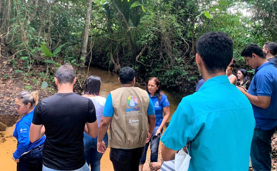 No primeiro dia da capacitação, a atividade prática reuniu os participantes na visita técnica ao Ribeirão dos Porcos, que teve o objetivo de promover a avaliação de impactos ambientais, para o planejamento da restauração florestal.