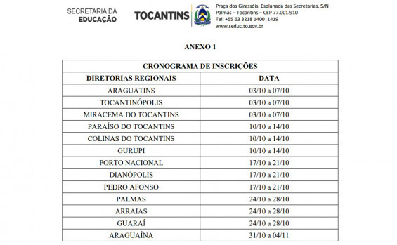 Poderão participar do projeto, exclusivamente, os estudantes que estejam matriculados na rede estadual de ensino do Tocantins. A participação dos alunos será de responsabilidade da unidade escolar onde o estudante está matriculado. Confira o cronograma de inscrições anexo à matéria.