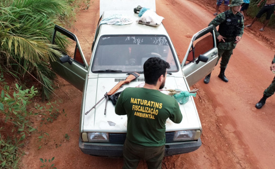 Durante a blitz as equipes autuaram em flagrante um homem por transporte de arma de fogo e aplicaram multa pelo abate de animal silvestre. No veículo, a fiscalização identificou uma ema (Rhea americana) abatida.