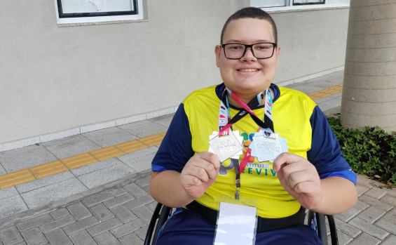 O estudante Bruno Gabriel Coelho Damasceno, cadeirante, 13 anos, da Escola Adventista de Palmas, que compete na modalidade natação, já conquistou duas medalhas de prata. "É a minha primeira vez nas Paralimpíadas Escolares e estou muito feliz. Essas duas vitórias me motivam a treinar e me esforçar mais, pois quero conquistar várias vitórias também em outras competições".