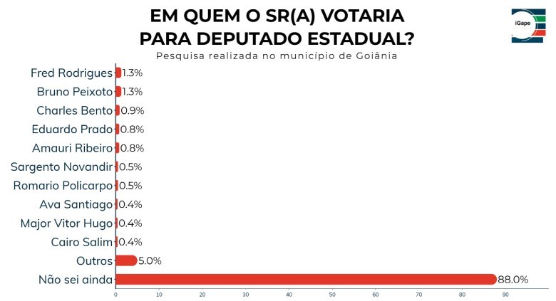 Pesquisa realizada pelo Instituto Gazeta de Pesquisas (IGAPE) identificou os candidatos mais citados para deputado estadual. Fred Rodrigues e Bruno Peixoto aparecem no topo das menções, ambos com 1,3% das citações.
