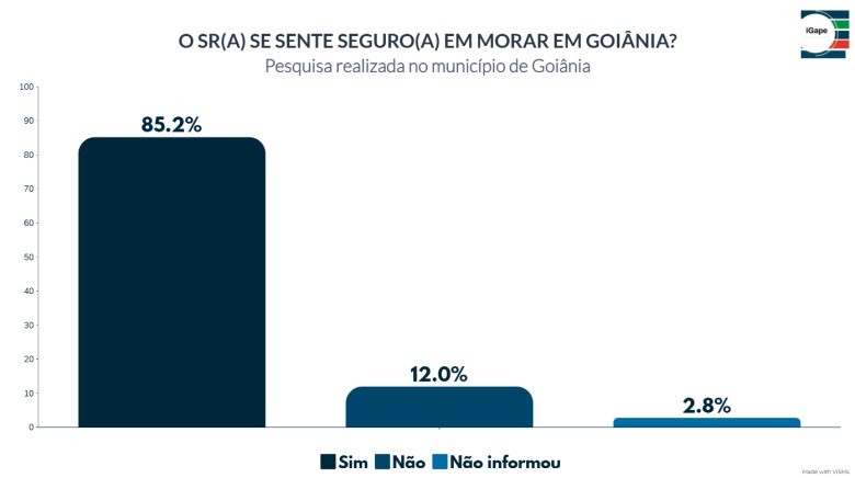 Uma pesquisa realizada pelo Instituto Gazeta de Pesquisas revelou que a maioria dos moradores de Goiânia se sente segura na cidade. De acordo com o levantamento, 85% dos entrevistados afirmaram que consideram o município um lugar seguro para viver. Outros 12% relataram que não compartilham da mesma percepção, enquanto 2,8% preferiram não opinar.